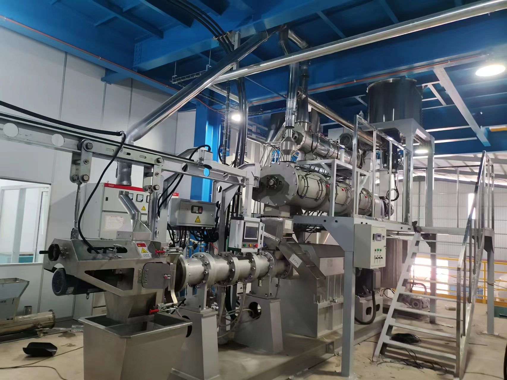 雙螺桿擠壓膨化機:在高溫高壓環(huán)境下膨化原料。