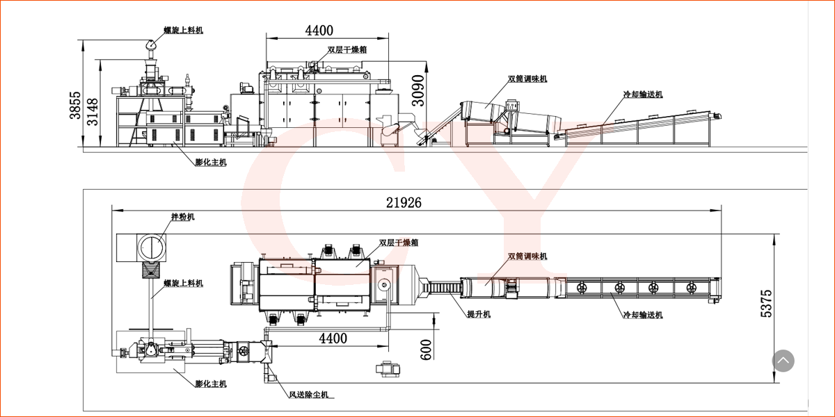 生產(chǎn)工藝:原料混合-擠壓成型-干燥-調味-冷卻