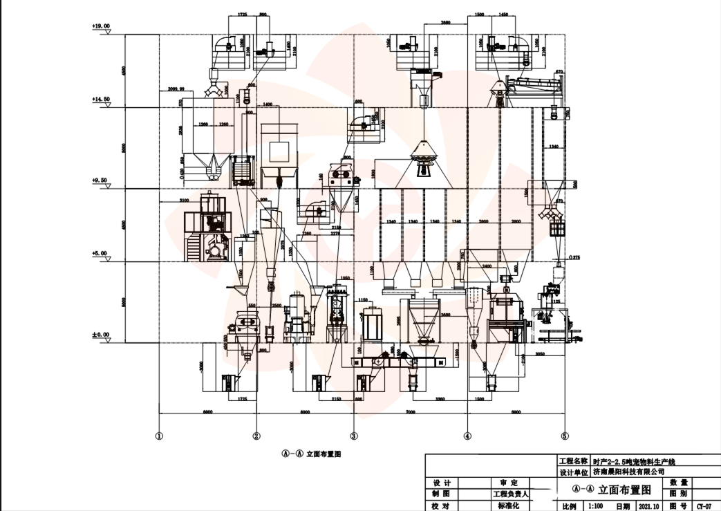 本套2-2.5T/h寵物食品生產(chǎn)線(xiàn)工藝特點(diǎn),因客戶(hù)是空地建設,我司設計首先考慮工藝流程的順暢,在設計上人性化布局,采用4層鋼結構設計,車(chē)間建設高度19米(因客戶(hù)政府高度限制),工藝方面使用國內主流二次混合,二次粉碎、雙螺桿膨化機、真空噴涂、逆流冷卻,產(chǎn)品混色,包裝碼垛等全部自動(dòng)流水線(xiàn)。配料倉采用12倉,滿(mǎn)足多種配方配料要求,配料軟件采用布勒系統。配料穩定,可儲存多種配方,配料記錄可留檔查詢(xún),原料混合使用雙軸漿葉混合機,混合均勻度≥98%,雙軸混合機排料殘留低,可保證每批原料的混合均勻度一致,粉碎機工藝采用粗粉加細粉,批次粉碎。避免不同原料進(jìn)粉碎機因過(guò)篩問(wèn)題產(chǎn)生沉降層。粗粉碎使用臥室錘片粉碎機,粉碎細度20目,產(chǎn)量高。細粉使用超威粉碎機,刀頭使用鎢合碳化鋼,硬度高。粉碎細度80目過(guò)篩率95%。保證產(chǎn)品成型表面光滑,無(wú)凹凸顆粒狀。在二次混合添加微量元素和一定比例油脂,提高產(chǎn)品油脂含量。膨化機使用雙螺桿膨化機,產(chǎn)品穩定,烘干使用帶式低溫干燥,微量元素熱損低,噴涂使用真空噴涂,油脂添加30%。使用翻板逆流冷卻器,冷卻效果好,配置4倉暫存倉,可以存儲4種不同顏色的產(chǎn)品,每個(gè)倉存儲可以到6個(gè)小時(shí)膨化產(chǎn)能的產(chǎn)品??梢酝瑫r(shí)四個(gè)顏色進(jìn)行混合,包裝方面配置自動(dòng)打包稱(chēng),自動(dòng)碼垛機,給帶式包裝機,包裝規格500g-25kg全部實(shí)現。