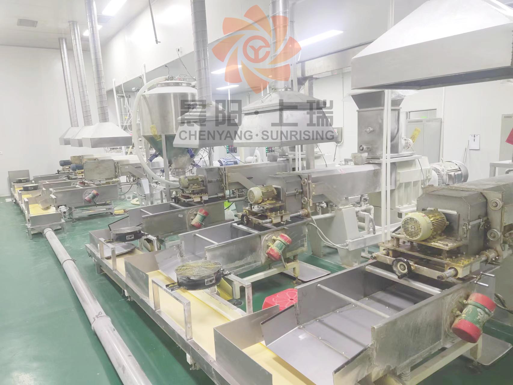 客戶(hù)因早餐營(yíng)養粉(沖調類(lèi)營(yíng)養粉)市場(chǎng)需求不斷增加,產(chǎn)能需求日益旺盛增加,與晨陽(yáng)分多次訂購營(yíng)養粉加工膨化設備,為保證產(chǎn)品的高質(zhì)量生產(chǎn),客戶(hù)生產(chǎn)車(chē)間使用無(wú)塵凈化車(chē)間。采用濟南晨陽(yáng)自主研發(fā)的新型62雙螺桿膨化機,本型號的機器單機產(chǎn)能300公斤每小時(shí),本機型運行穩定,產(chǎn)品質(zhì)量在同行業(yè)排在前端,客戶(hù)用該機型24小時(shí)不間斷連續運行,單機日產(chǎn)能7.2噸。該機型在客戶(hù)工廠(chǎng)經(jīng)住考驗,得到客戶(hù)的充分肯定。在日產(chǎn)7噸的產(chǎn)能下已經(jīng)復制6臺機器,擴產(chǎn)到日產(chǎn)能到45噸,產(chǎn)能和質(zhì)量的穩定在同行業(yè)已經(jīng)達到頂端??蛻?hù)根據市場(chǎng)需求,已經(jīng)在研產(chǎn)新的生產(chǎn)線(xiàn),規劃未來(lái),未雨綢繆!感謝客戶(hù)的信任,我們將一如既往的用熱情的服務(wù)和更高的質(zhì)量回饋客戶(hù)嗎,合作共贏(yíng),同謀發(fā)展!