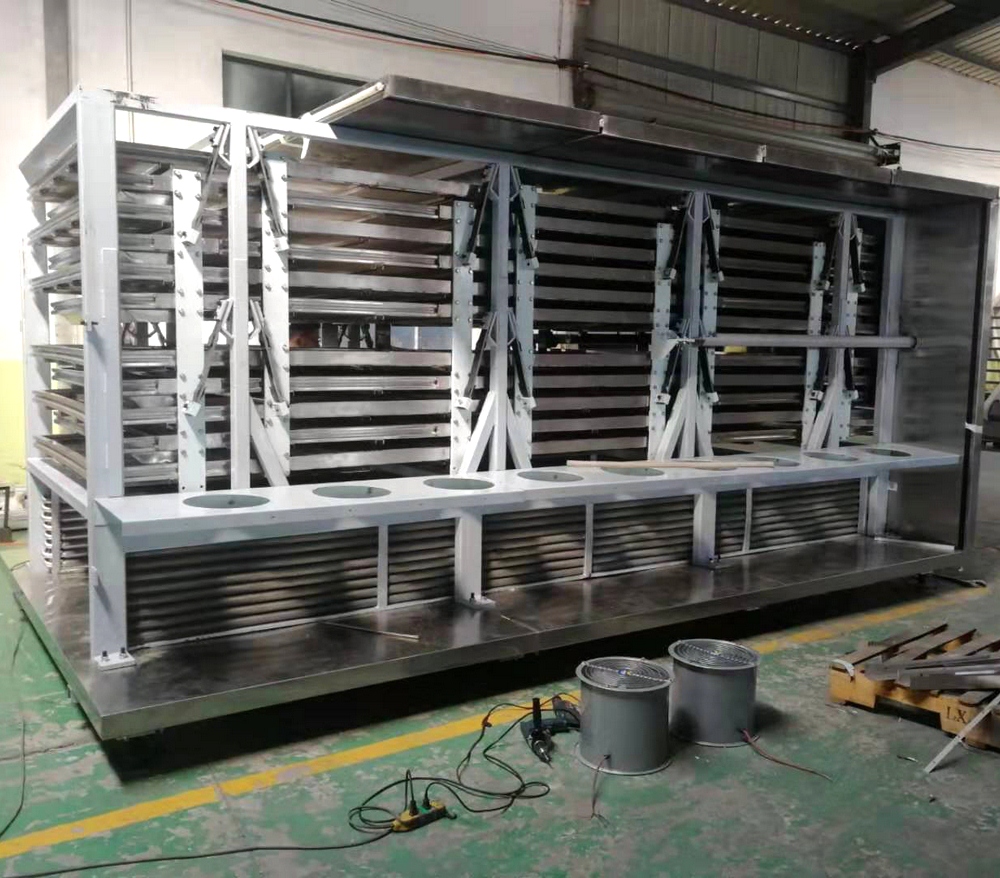 干燥時(shí)物料從設備頂部的加料口進(jìn)入,在振動(dòng)和自身重力的作用下,物料從上層自下層往復移動(dòng),后從底層的出料口排出。熱空氣從底層進(jìn)入,穿過(guò)帶孔床層往動(dòng),同時(shí)與床層上的物料進(jìn)行充分的傳熱和傳質(zhì),后通過(guò)頂部的排濕口排出。