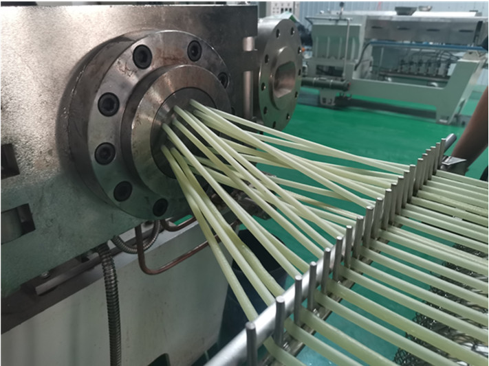 原料混合-擠壓熟化-定型干燥-切斷-一次干燥-二次干燥--冷卻-包裝